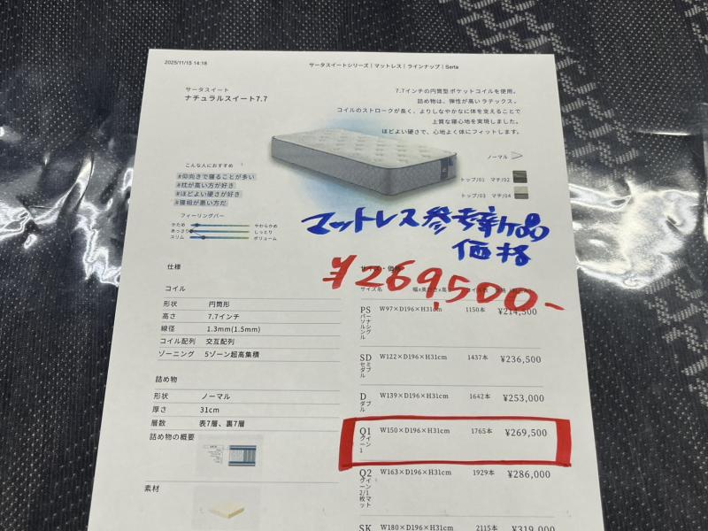 寝心地はお店で体験してみてください。